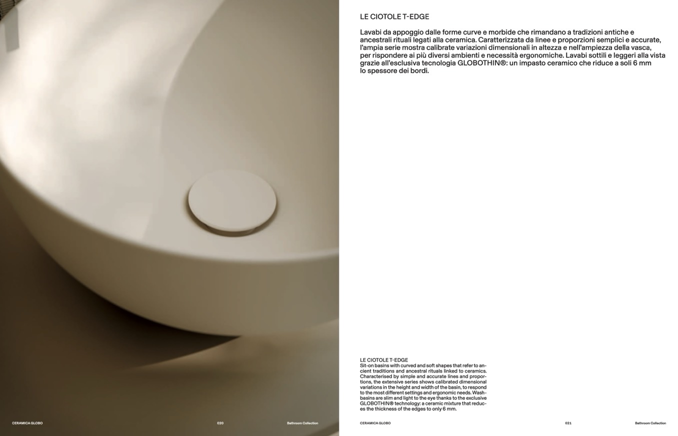 per rispondere ai più diversi ambienti e necessità ergonomiche. Lavabi sottili e leggeri alla vista