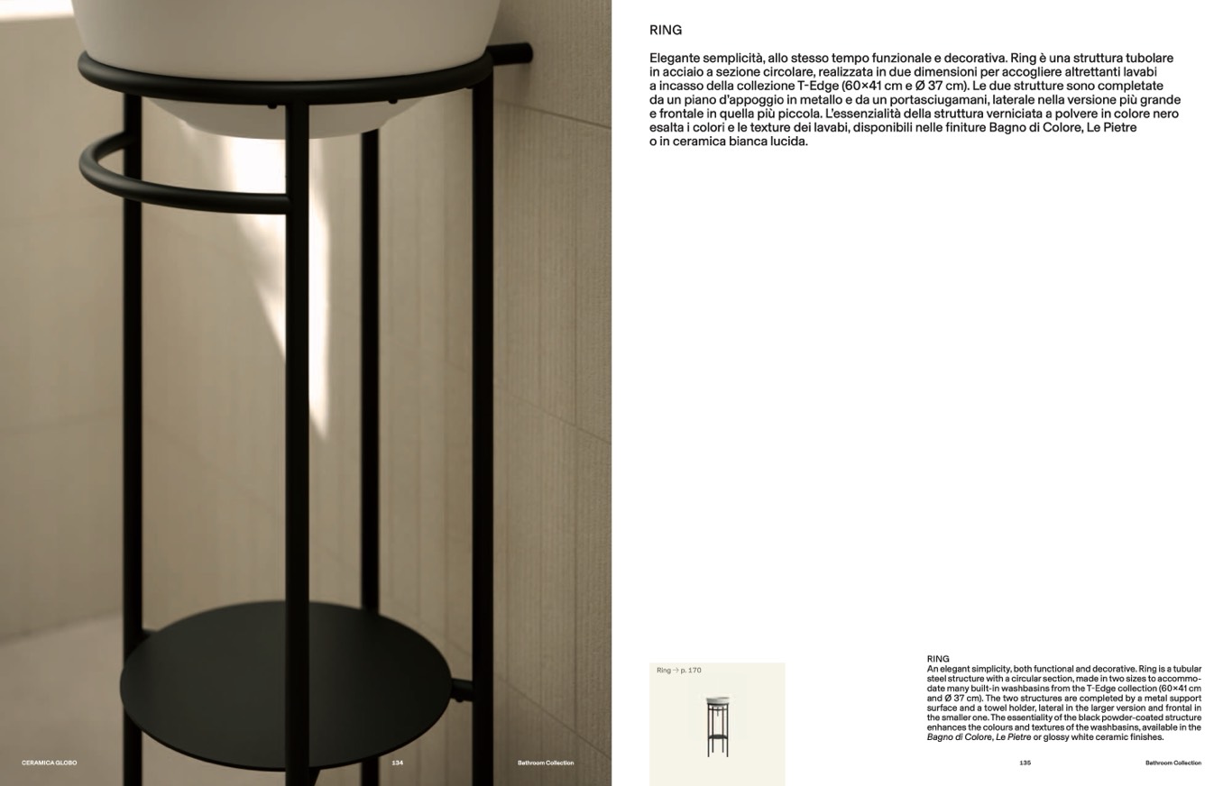 a incasso della collezione T-Edge (60×41 cm e Ø 37 cm). Le due strutture sono completate