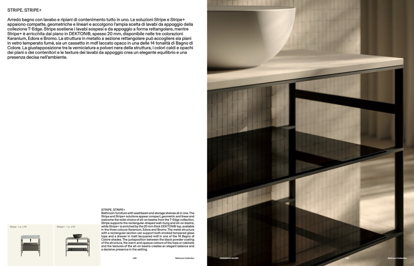 while Stripe+ is enriched by the 20 mm thick DEKTON® top, available