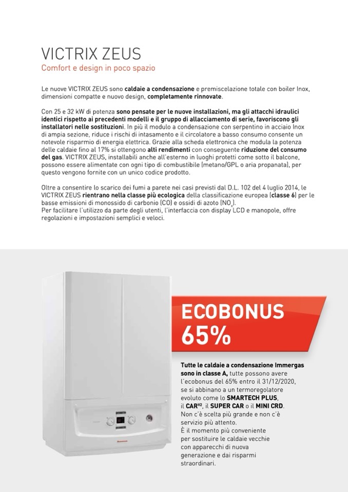 del gas. VICTRIX ZEUS, installabili anche all’esterno in luoghi protetti come sotto il balcone,
