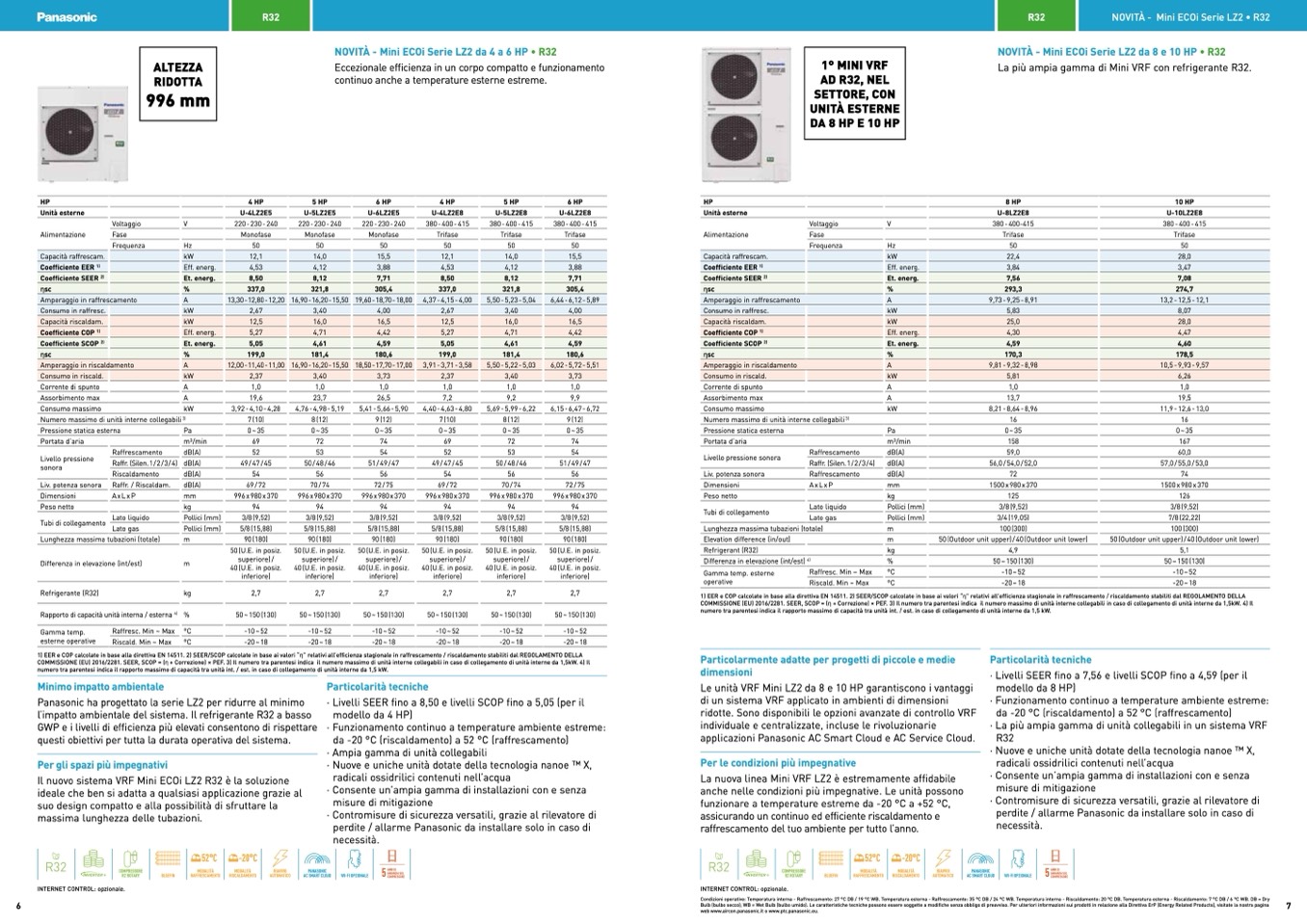 · Livelli SEER fino a 8,50 e livelli SCOP fino a 5,05 (per il