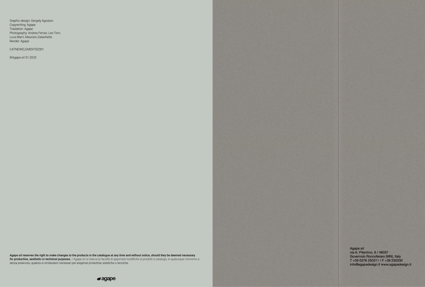 Agape srl reserves the right to make changes to the products in the catalogue at any time and without notice, should they be deemed necessary