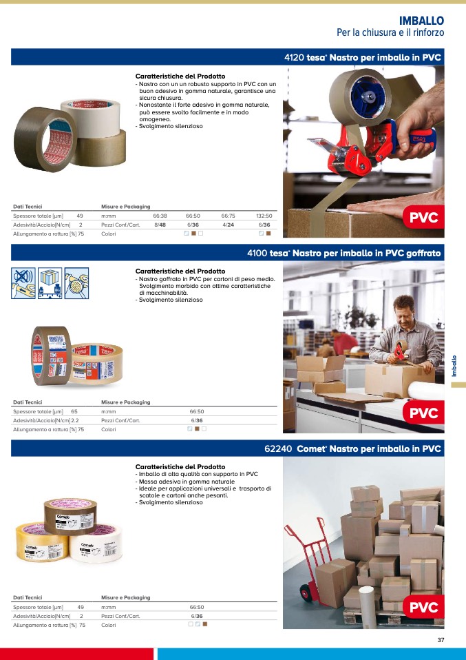 - Nastro goffrato in PVC per cartoni di peso medio.