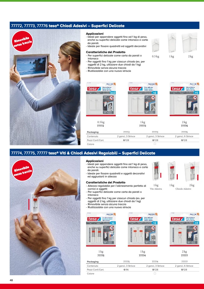 - Per oggetti fino 1 kg per ciascun chiodo (es. per