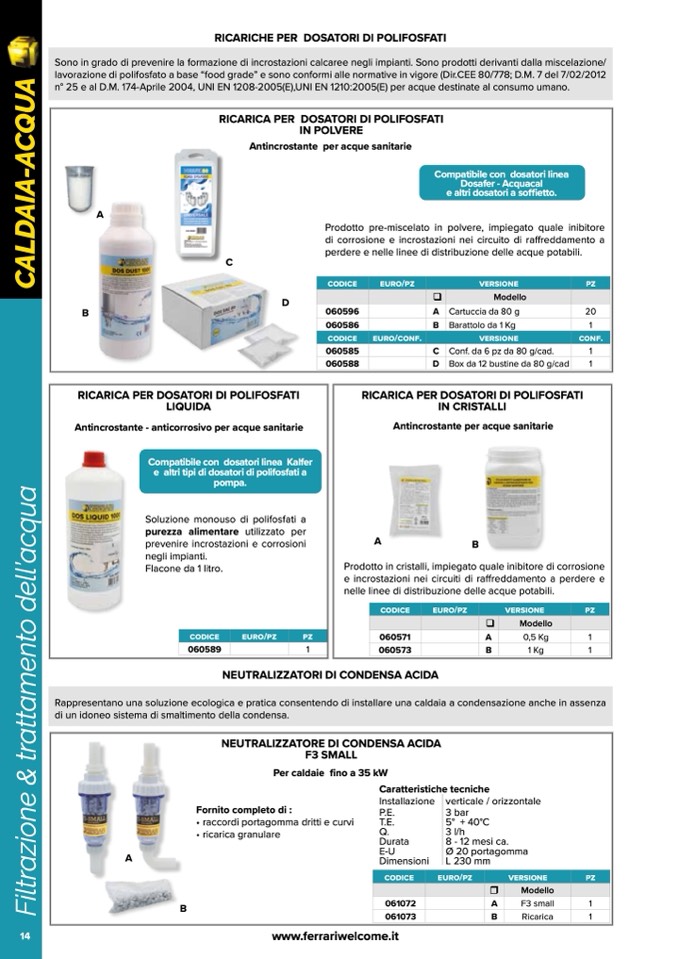RICARICHE PER DOSATORI DI POLIFOSFATI