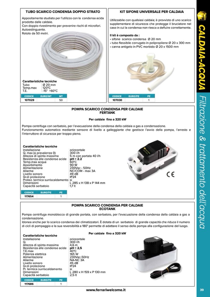 POMPA SCARICO CONDENSA PER CALDAIE