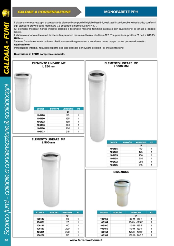 Sistema fumario e canale da fumo plastico asserviti a generatori a condensazione, cappe cucina per uso domestico.