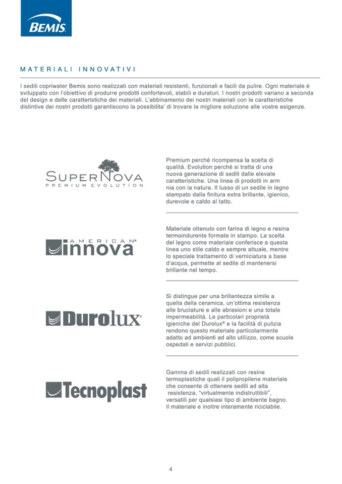 I sedili copriwater Bemis sono realizzati con materiali resistenti, funzionali e facili da pulire. Ogni materiale è