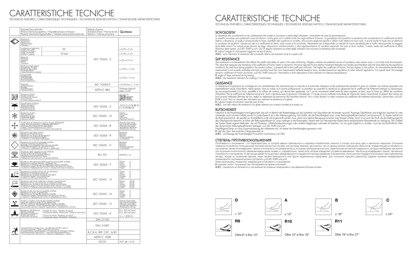 A.B.C.: показатели устойчивости к скольжению во влажных помещениях и при движении босыми ногами.