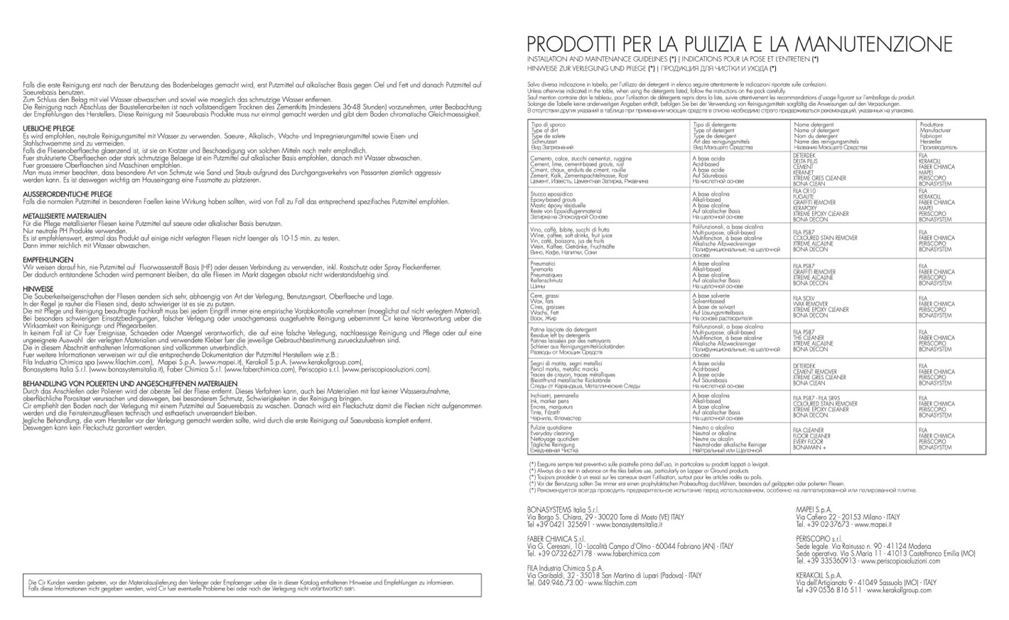 (*) Eseguire sempre test preventivo sulle piastrelle prima dell’uso, in particolare su prodotti lappati o levigati.