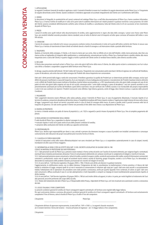 Le seguenti Condizioni Generali di vendita si applicano a tutti i Contratti di Vendita in essere tra il venditore (in seguito denominato anche Pleion S.p.a.) e l’Acquirente