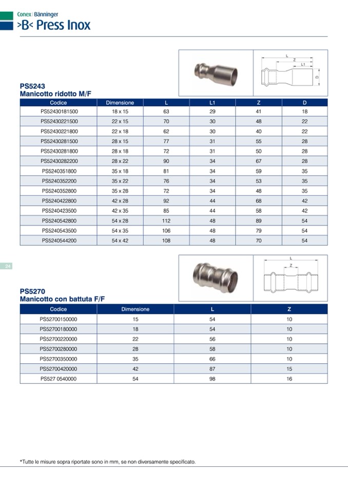 *Tutte le misure sopra riportate sono in mm, se non diversamente specificato.