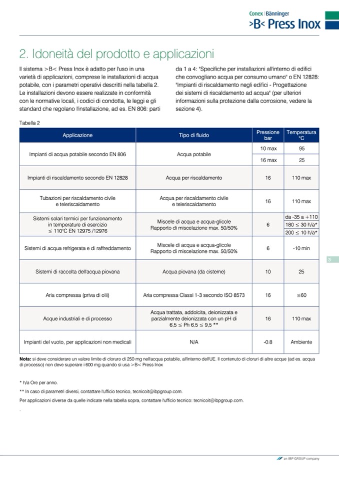 Per applicazioni diverse da quelle indicate nella tabella sopra, contattare l'ufficio tecnico: tecnicoit@ibpgroup.com.