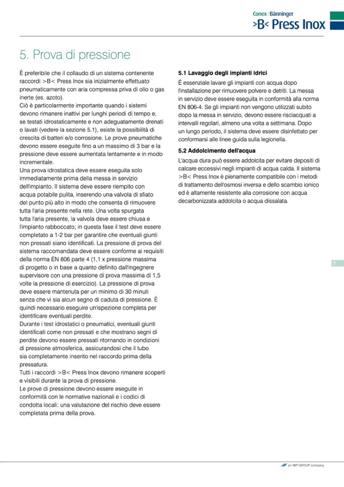 Tutti i raccordi >B< Press Inox devono rimanere scoperti