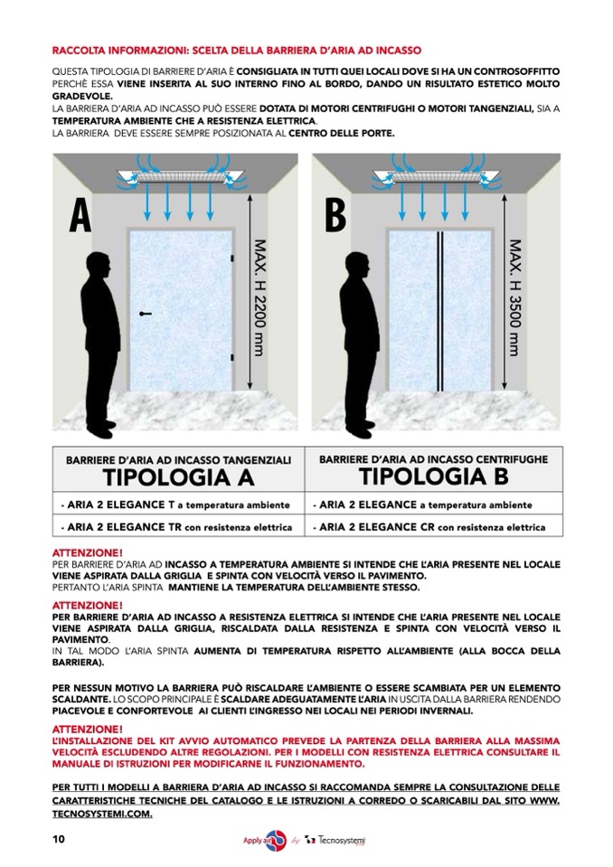 PER TUTTI I MODELLI A BARRIERA D’ARIA AD INCASSO SI RACCOMANDA SEMPRE LA CONSULTAZIONE DELLE