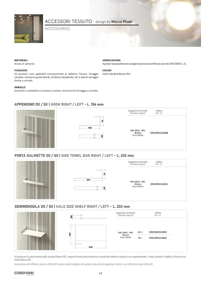 Accessories with different colour as White R01 can be ordered togheter with radiator only and not separately. Article nr. are referred to colour White R0.