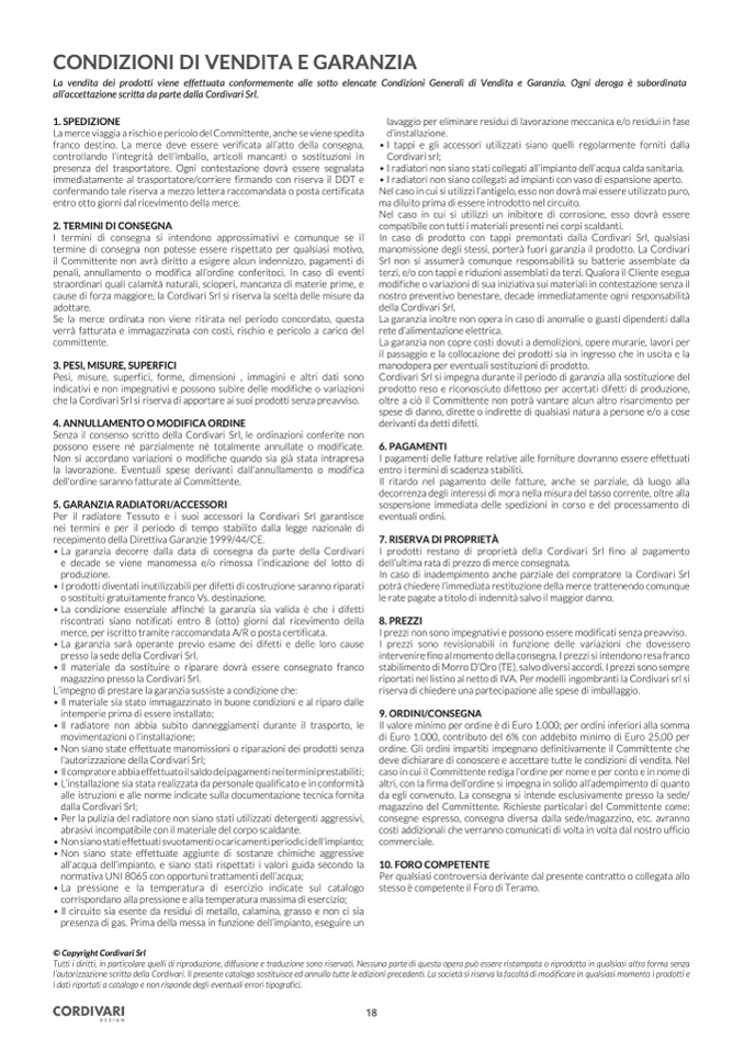 Per il radiatore Tessuto e i suoi accessori la Cordivari Srl garantisce