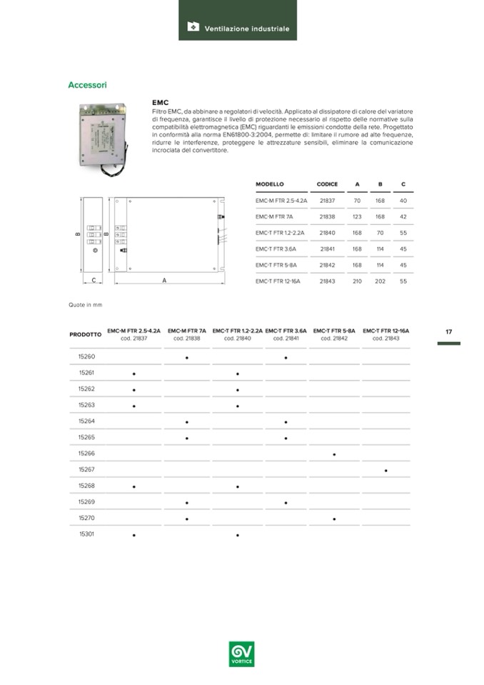 Filtro EMC, da abbinare a regolatori di velocità. Applicato al dissipatore di calore del variatore