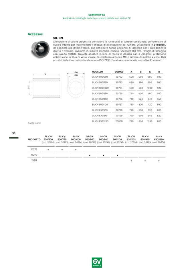 acustici testati in conformità alla norma ISO 7235. Forature conformi alla normativa Eurovent.