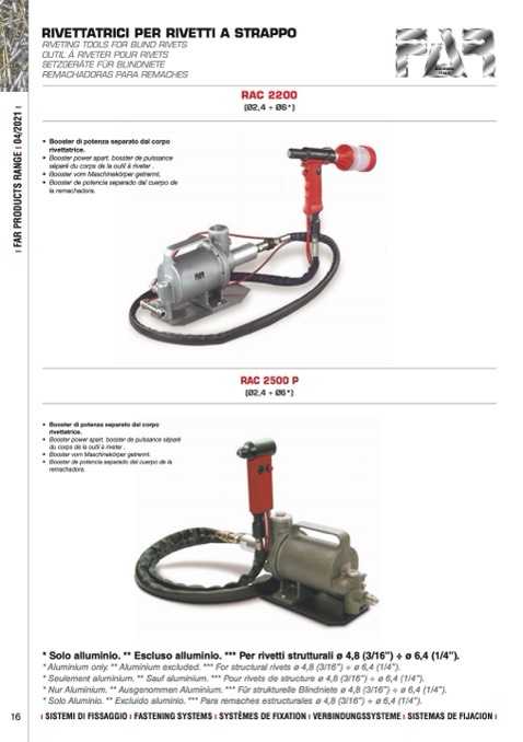 * Seulement aluminium. ** Sauf aluminium. *** Pour rivets de structure ø 4,8 (3/16”) ÷ ø 6,4 (1/4”).
