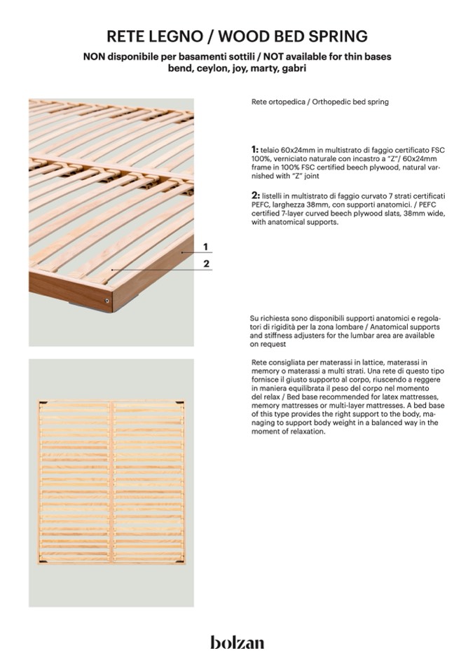del relax / Bed base recommended for latex mattresses,