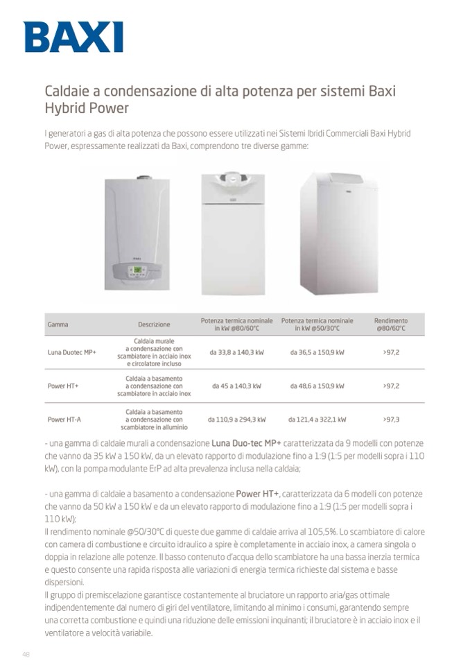 I generatori a gas di alta potenza che possono essere utilizzati nei Sistemi Ibridi Commerciali Baxi Hybrid