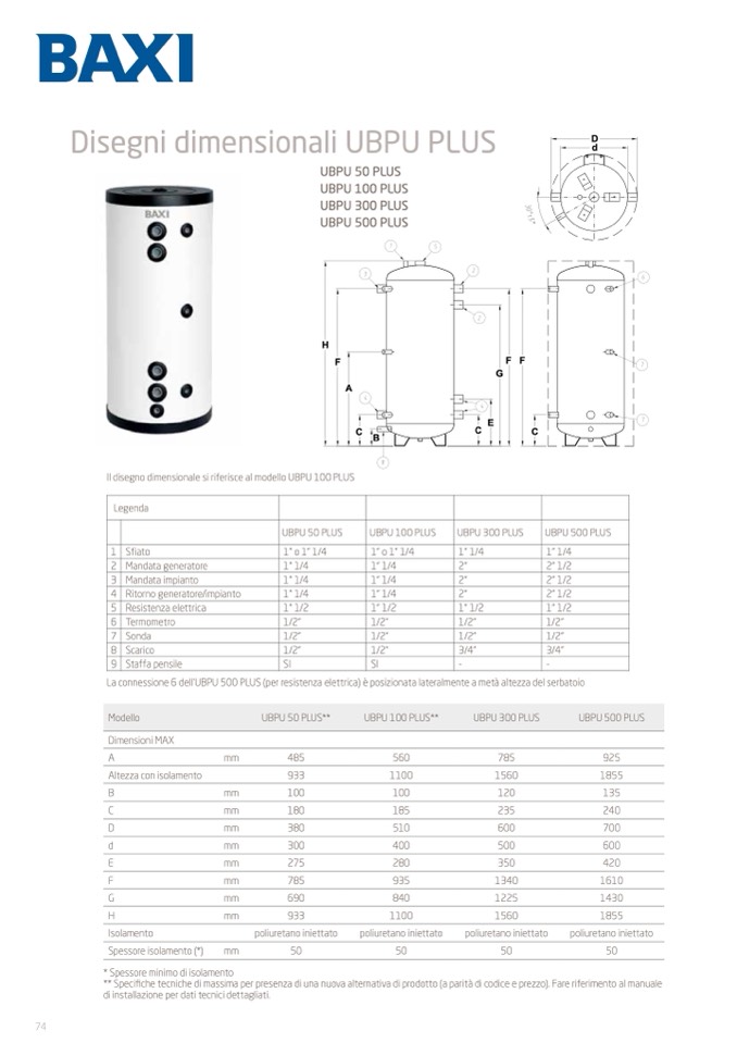 La connessione 6 dell’UBPU 500 PLUS (per resistenza elettrica) è posizionata lateralmente a metà altezza del serbatoio