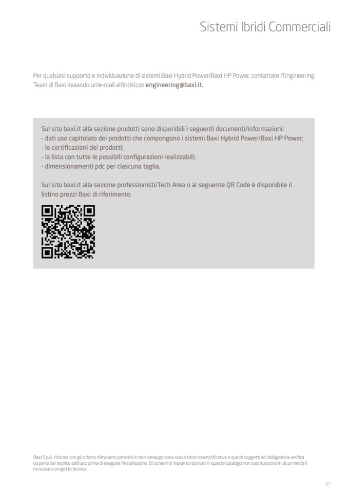 Sul sito baxi.it alla sezione professionisti/Tech Area o al seguente QR Code è disponibile il