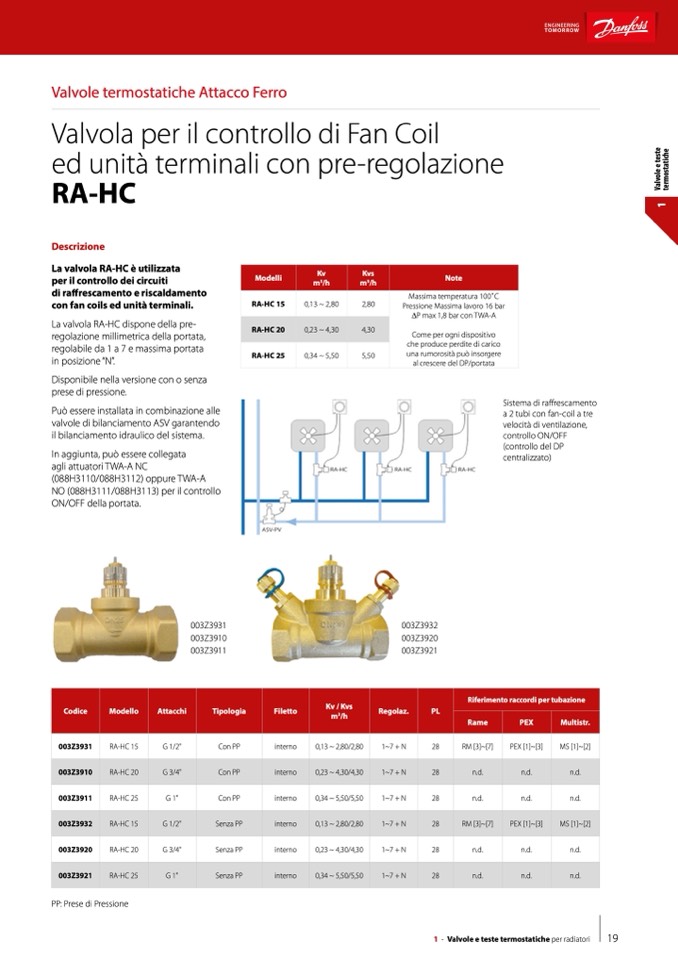 La valvola RA-HC è utilizzata