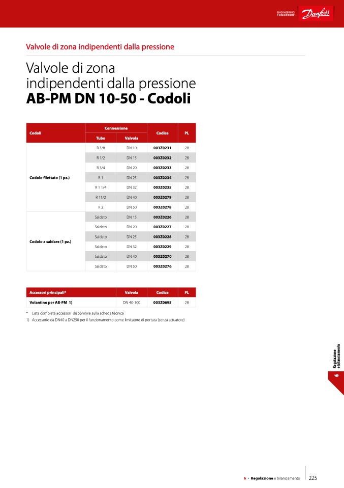 1) Accessorio da DN40 a DN250 per il funzionamento come limitatore di portata (senza attuatore)