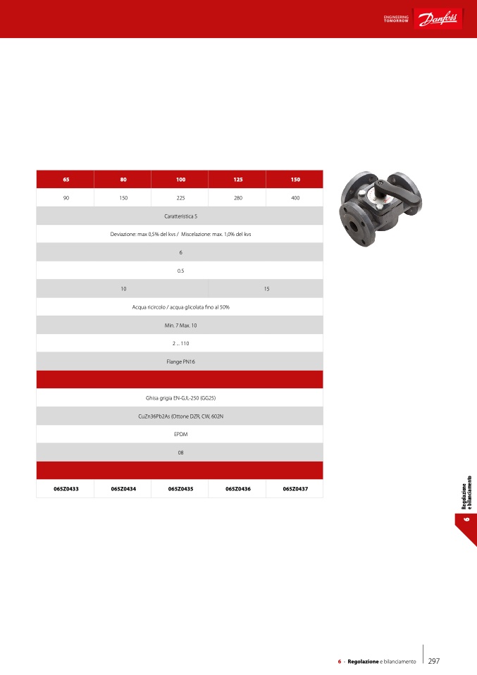 Deviazione: max 0,5% del kvs / Miscelazione: max. 1,0% del kvs