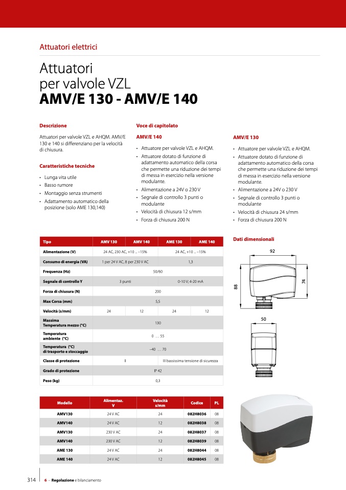 Attuatori per valvole VZL e AHQM. AMV/E
