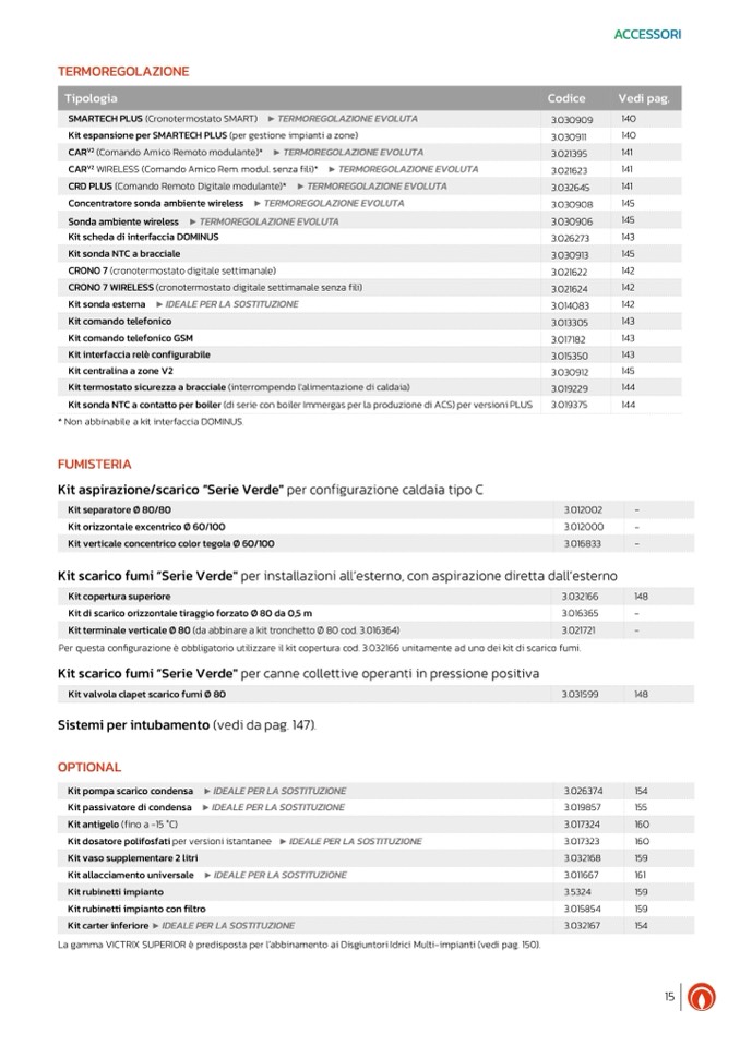 La gamma VICTRIX SUPERIOR è predisposta per l’abbinamento ai Disgiuntori Idrici Multi-impianti (vedi pag. 150).