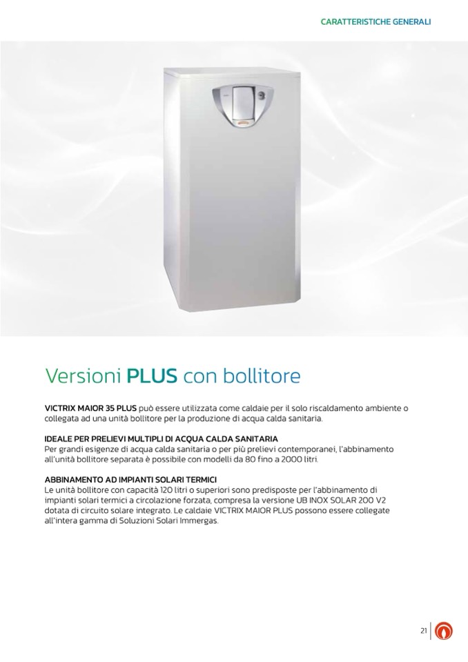 dotata di circuito solare integrato. Le caldaie VICTRIX MAIOR PLUS possono essere collegate