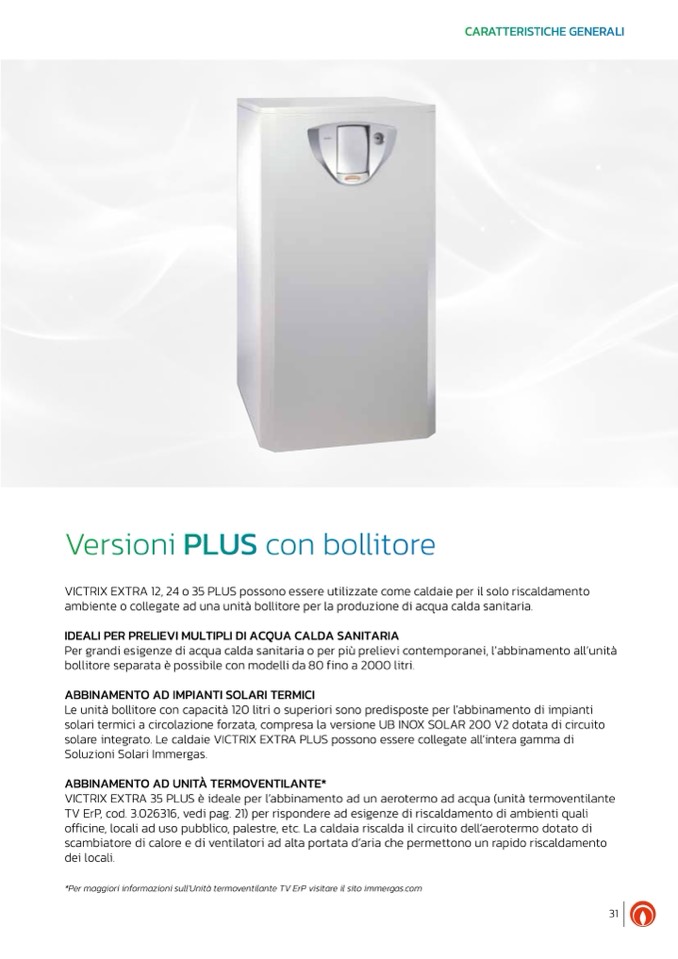 VICTRIX EXTRA 35 PLUS è ideale per l’abbinamento ad un aerotermo ad acqua (unità termoventilante