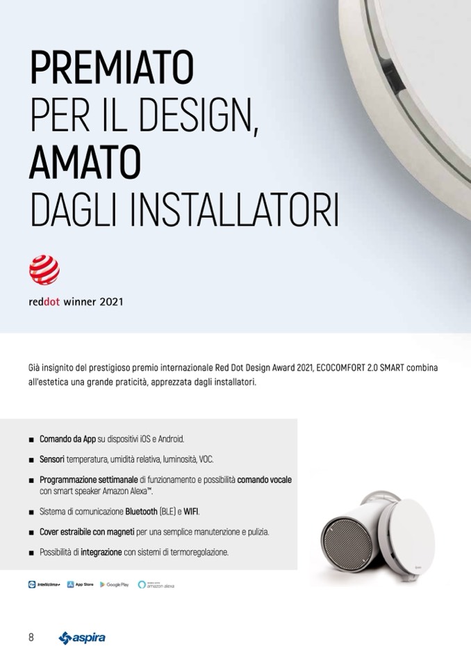 Già insignito del prestigioso premio internazionale Red Dot Design Award 2021, ECOCOMFORT 2.0 SMART combina