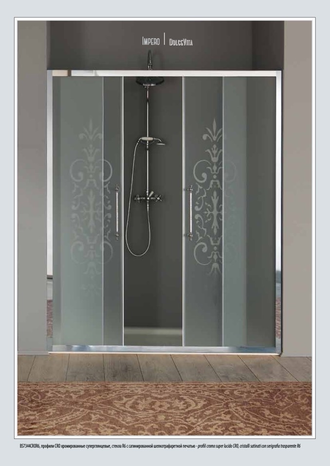 BS7344CROR6, профили CRO хромированные суперглянцевые, стекла R6 с сатинированной шелкотрафаретной печатью - profili cromo super lucido CRO, cristalli satinati con serigrafia trasparente R6