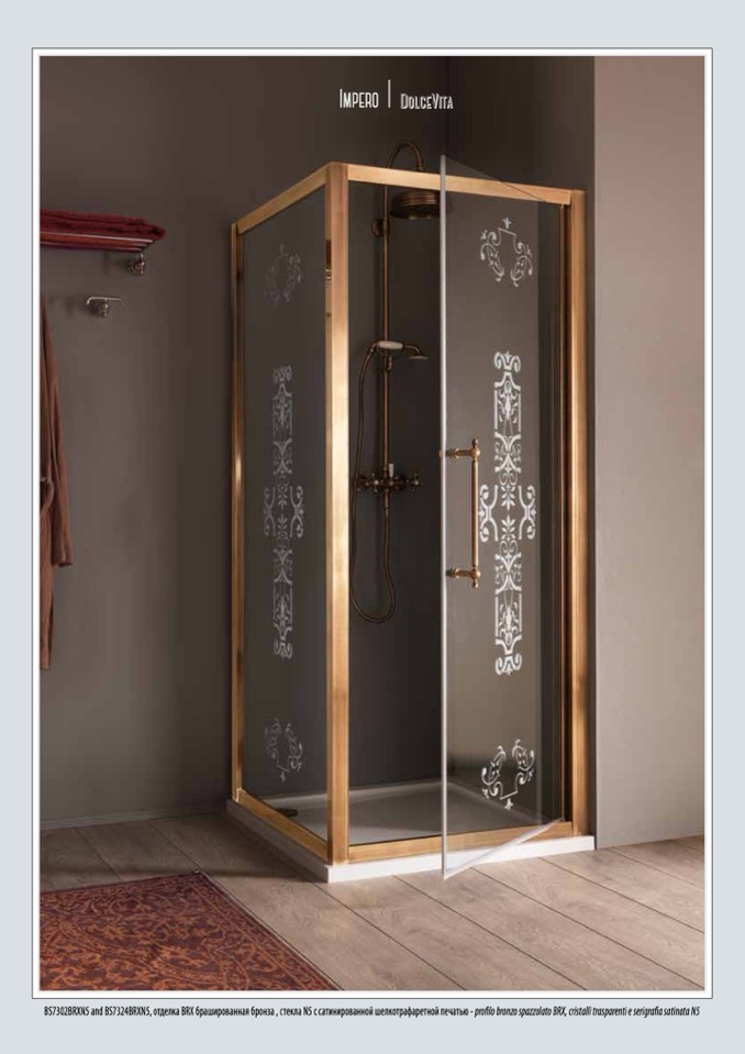 BS7302BRXN5 and BS7324BRXN5, отделка BRX брашированная бронза , стекла N5 с сатинированной шелкотрафаретной печатью - profilo bronzo spazzolato BRX, cristalli trasparenti e serigrafia satinata N5