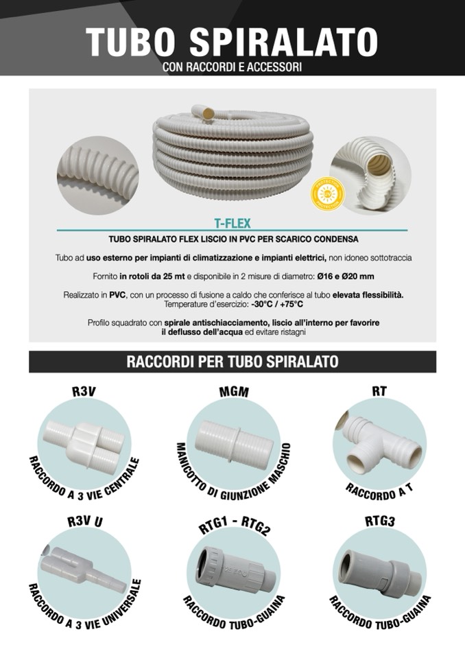 TUBO SPIRALATO FLEX LISCIO IN PVC PER SCARICO CONDENSA