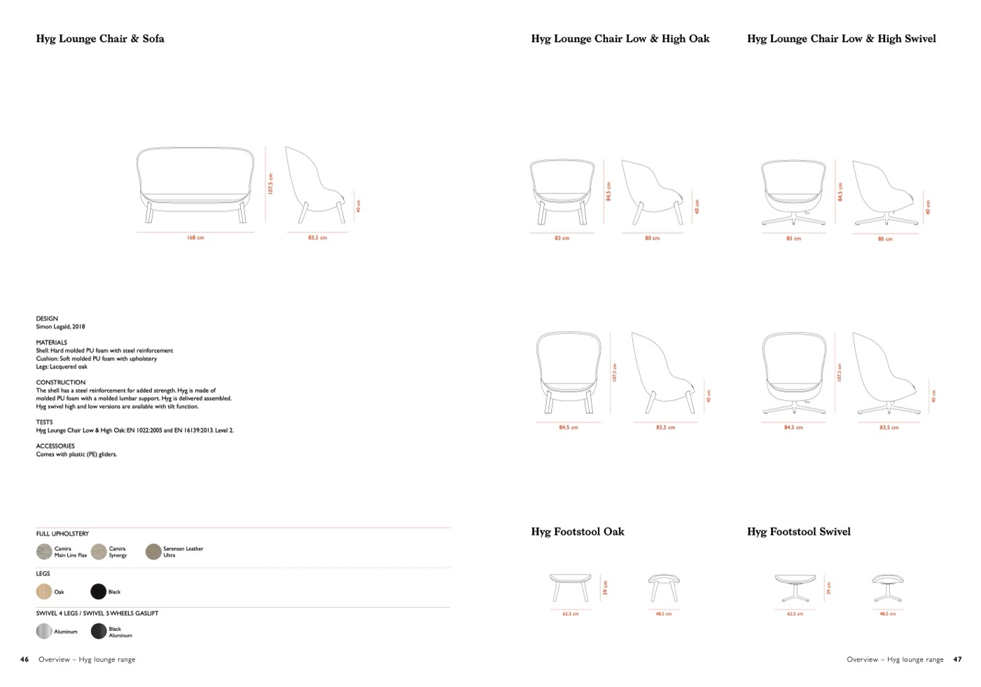 Hyg swivel high and low versions are available with tilt function.