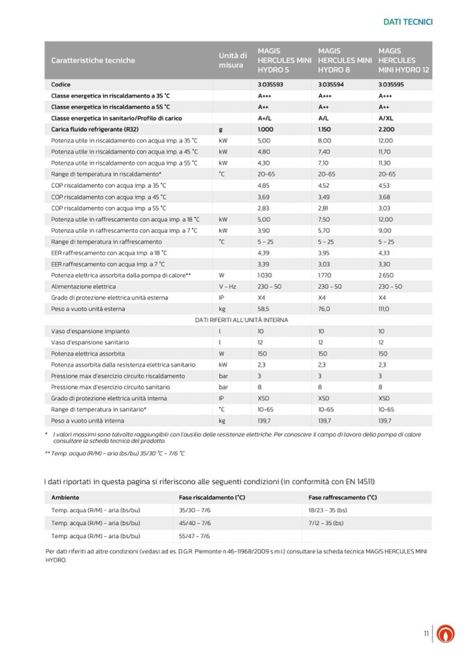 Per dati riferiti ad altre condizioni (vedasi ad es. D.G.R. Piemonte n.46-11968/2009 s.m.i.) consultare la scheda tecnica MAGIS HERCULES MINI