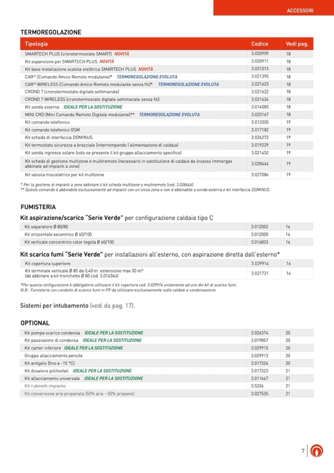 N.B.: Fumisteria con condotto di scarico fumi in PP da utilizzare esclusivamente sulle caldaie a condensazione.