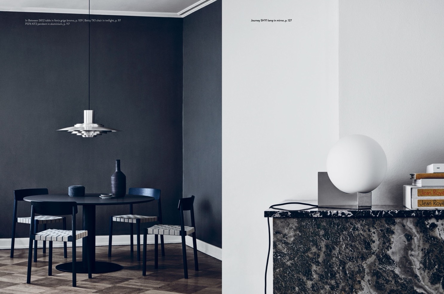 In Between SK12 table in fenix grigo bromo, p. 109 | Betty TK1 chair in twilight, p. 97