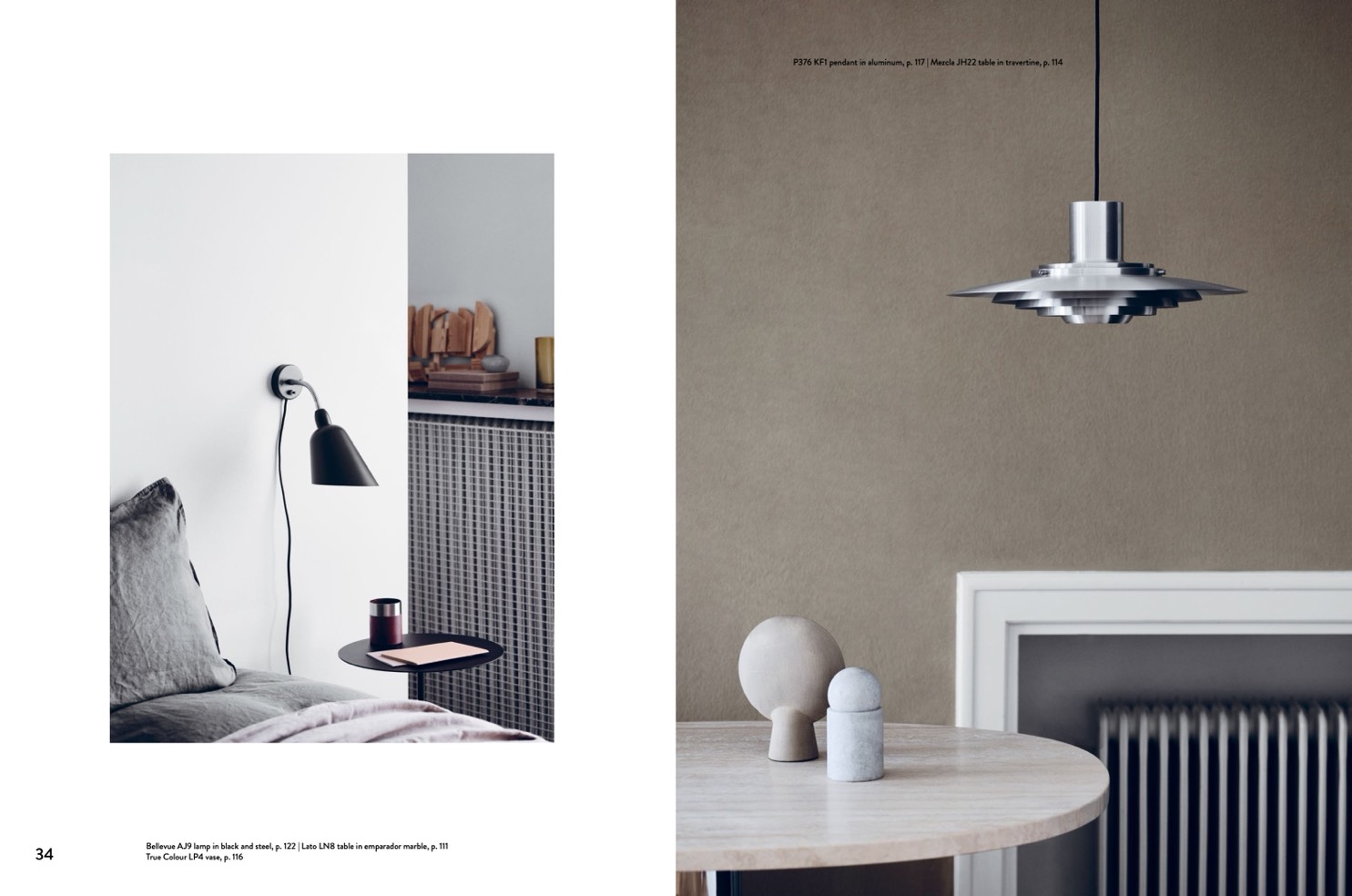 Bellevue AJ9 lamp in black and steel, p. 122 | Lato LN8 table in emparador marble, p. 111