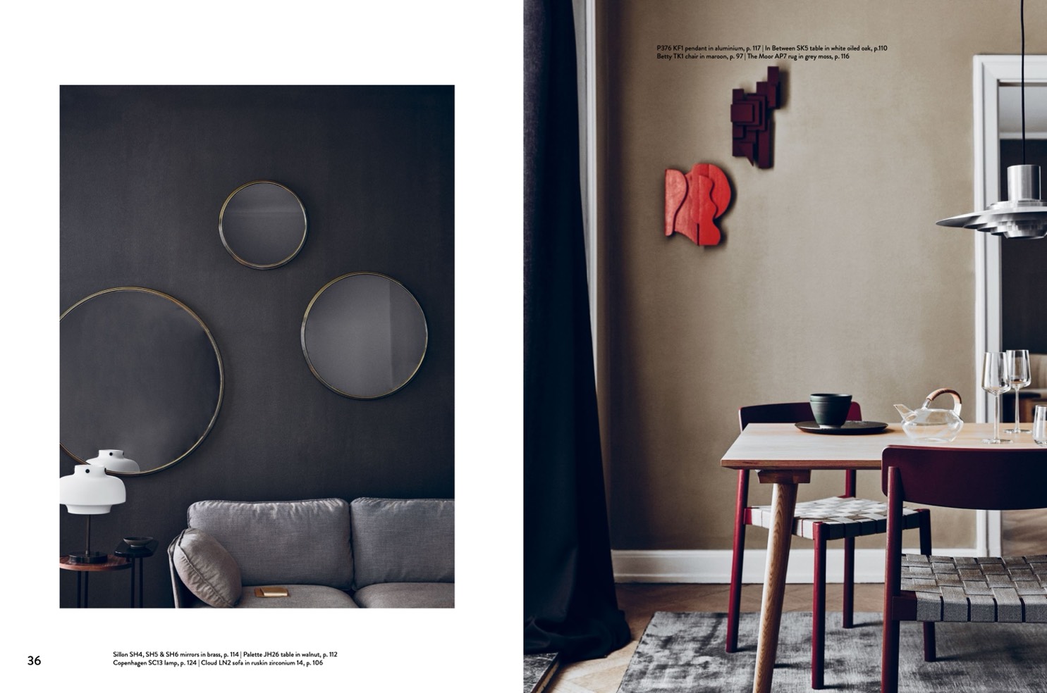 Copenhagen SC13 lamp, p. 124 | Cloud LN2 sofa in ruskin zirconium 14, p. 106