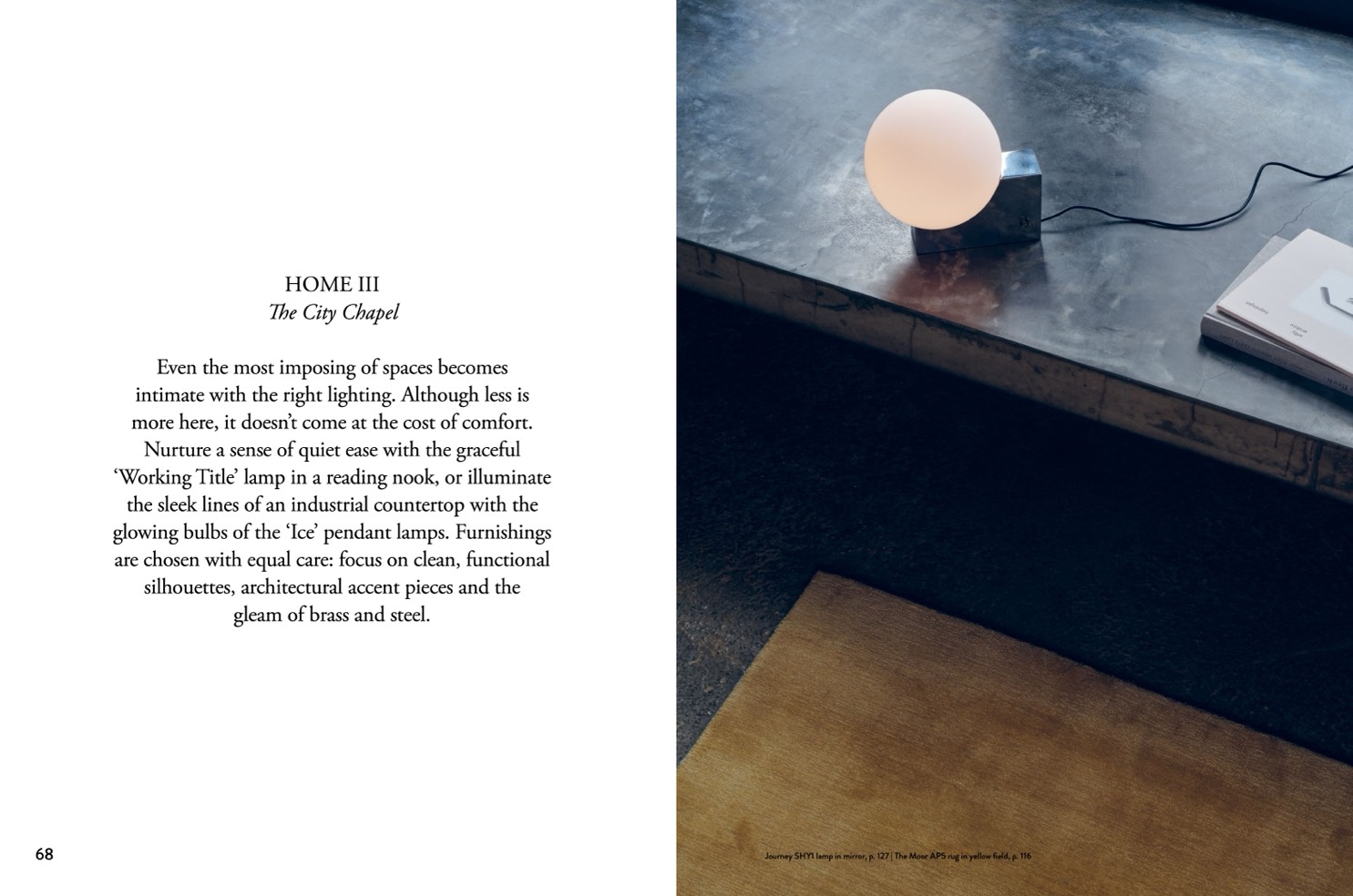 Journey SHY1 lamp in mirror, p. 127 | The Moor AP5 rug in yellow field, p. 116