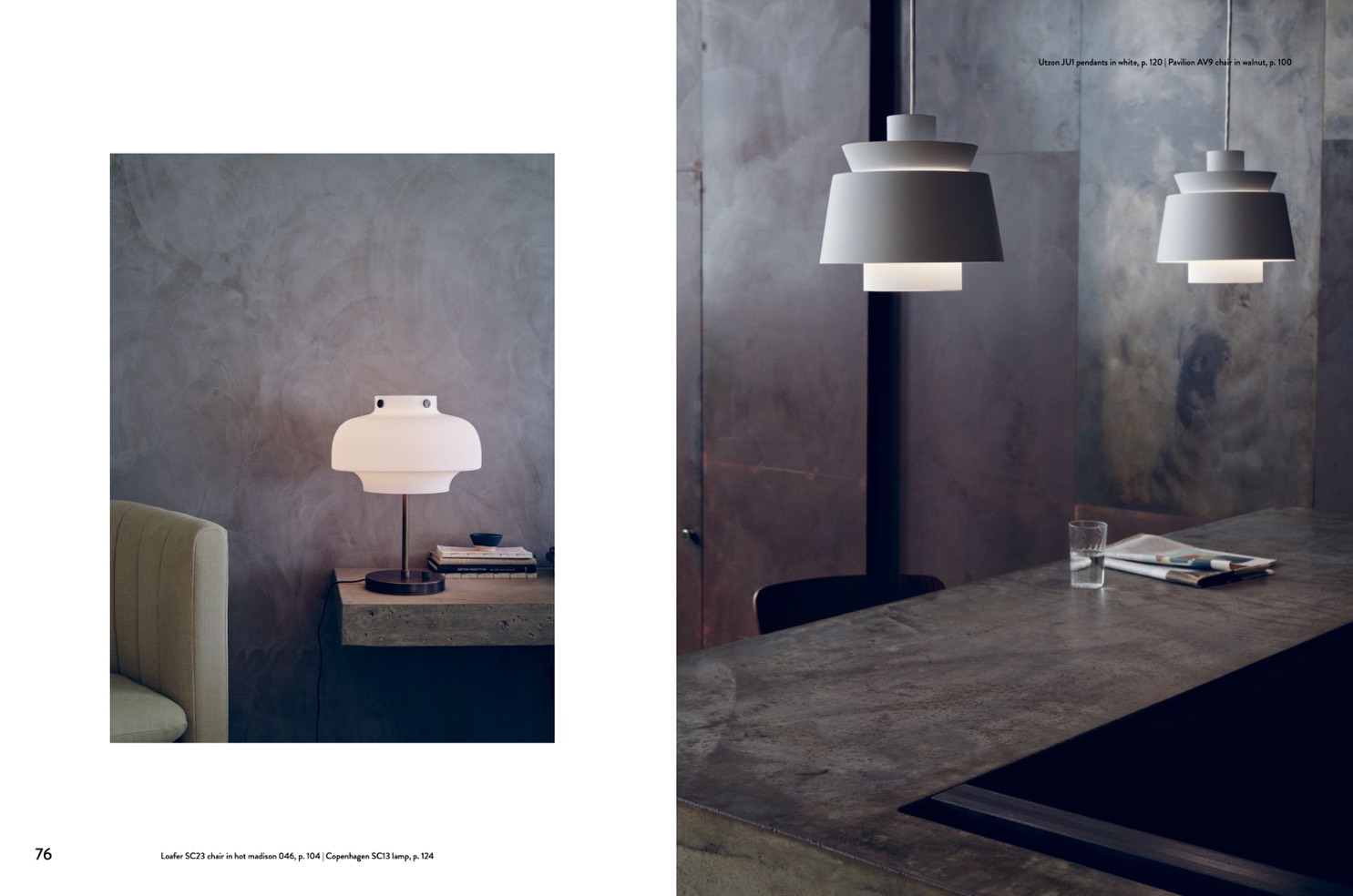 Utzon JU1 pendants in white, p. 120 | Pavilion AV9 chair in walnut, p. 100