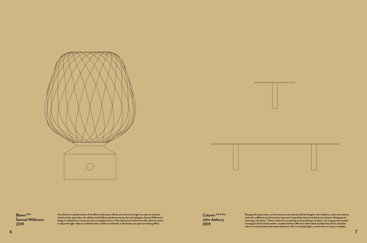 Playing with proportions, surface textures and materials, British designer John Astbury creates two shelves,