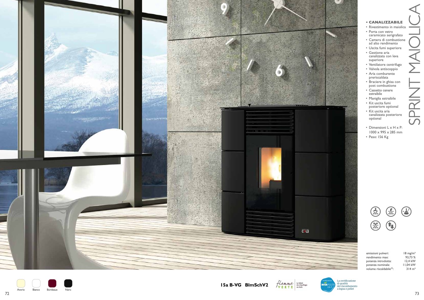 • Uscita fumi superiore
