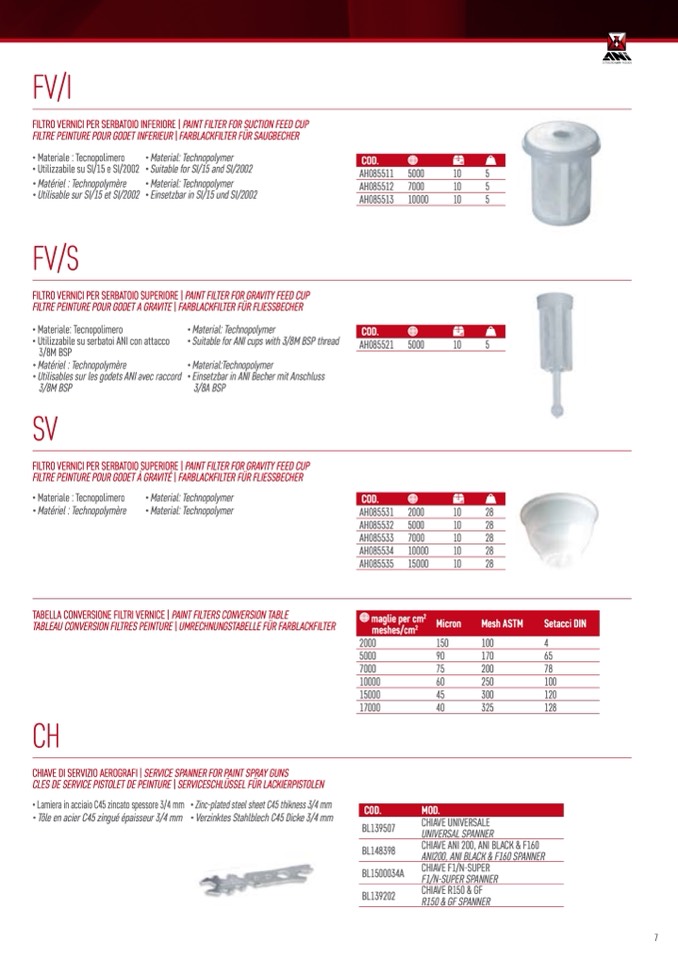 TABELLA CONVERSIONE FILTRI VERNICE | PAINT FILTERS CONVERSION TABLE